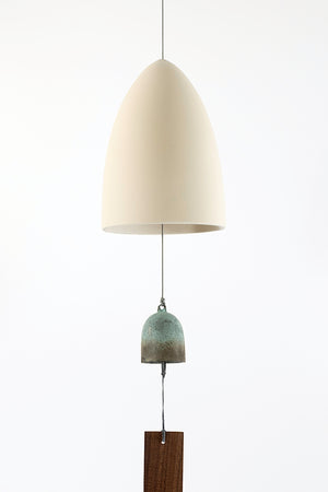 The Cairn Wind Chime is a hand-cast porcelain memorial, available as a single or double chime, offered in several understated colors and finished with a Japanese bronze bell that rings in a clear, singular note.