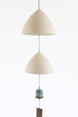 The Dune Wind Chime is a hand-cast porcelain memorial, available as a single or double chime, offered in several understated colors and finished with a Japanese bronze bell that rings in a clear, singular note.